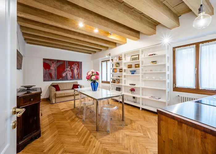 Este apartamento bien equipado se encuentra en el barrio San Marco, a tan solo 5 minutos a pie de la Colección Peggy Guggenheim y a unos cuantos pasos de la Galería de la Academia. La Torre del Reloj está a tan solo 1 km de este apartamento de 65 m². El Puente de Rialto está a unos 10 minutos en coche.